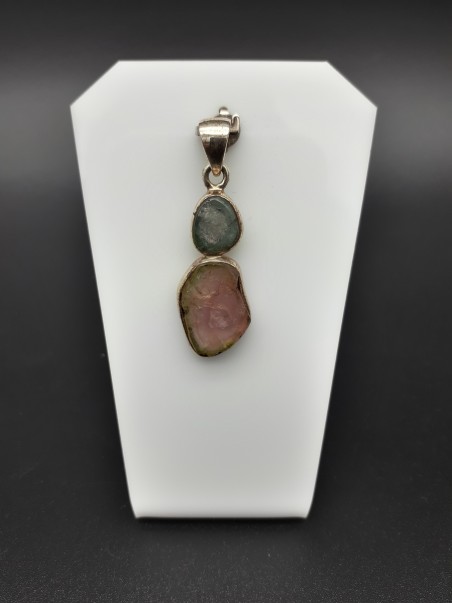 Pendentif en tourmaline melon d'eau et indicolite naturelles du Brésil.