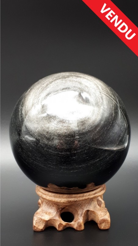Sphère d'obsidienne argentée naturelle du Mexique.