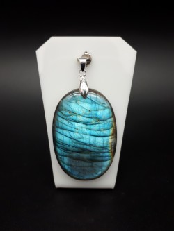 Pendentif en labradorite naturelle de Madagascar. Labradorite brute, polie sur la face avant.