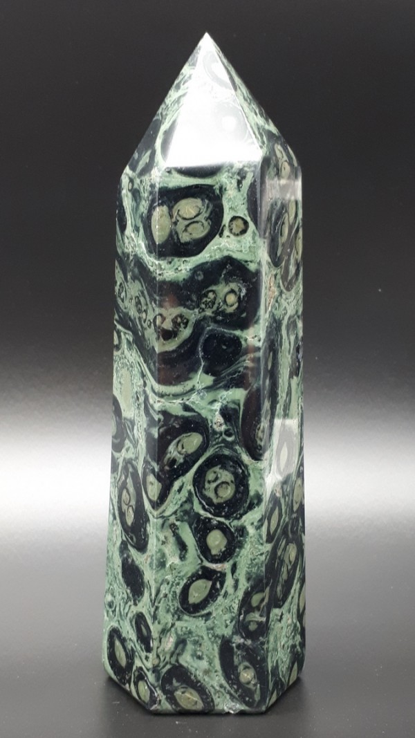 Pointe polie de jaspe Kambaba naturel de Madagascar.