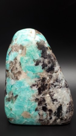 Forme libre d'amazonite avec quartz fumé naturels de Madagascar.