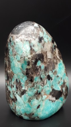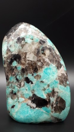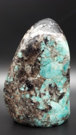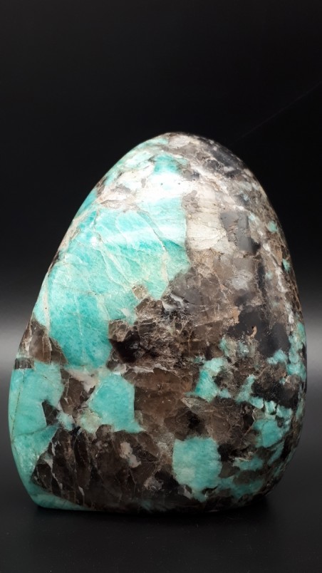 Forme libre d'amazonite avec quartz fumé naturels de Madagascar.