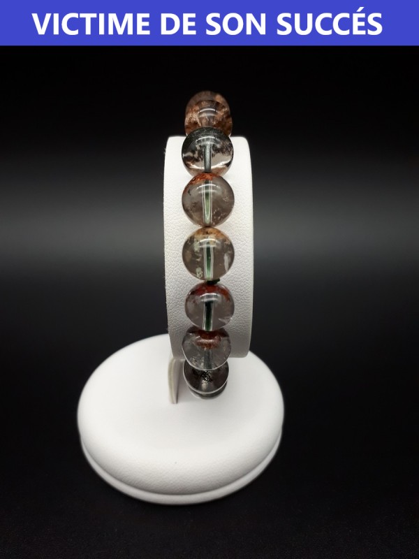 Bracelet en perles naturelles de quartz lodolite du Brésil, diamètre 10mm.