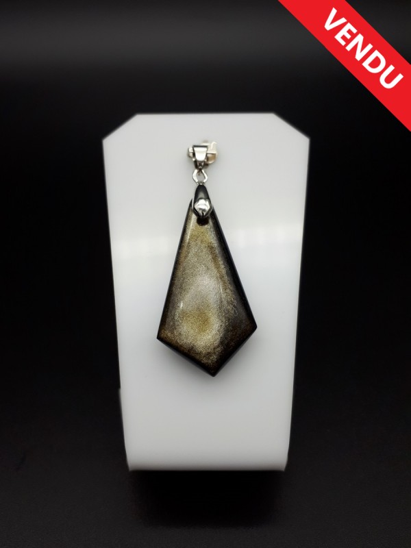 Pendentif en obsidienne dorée naturelle du Mexique.